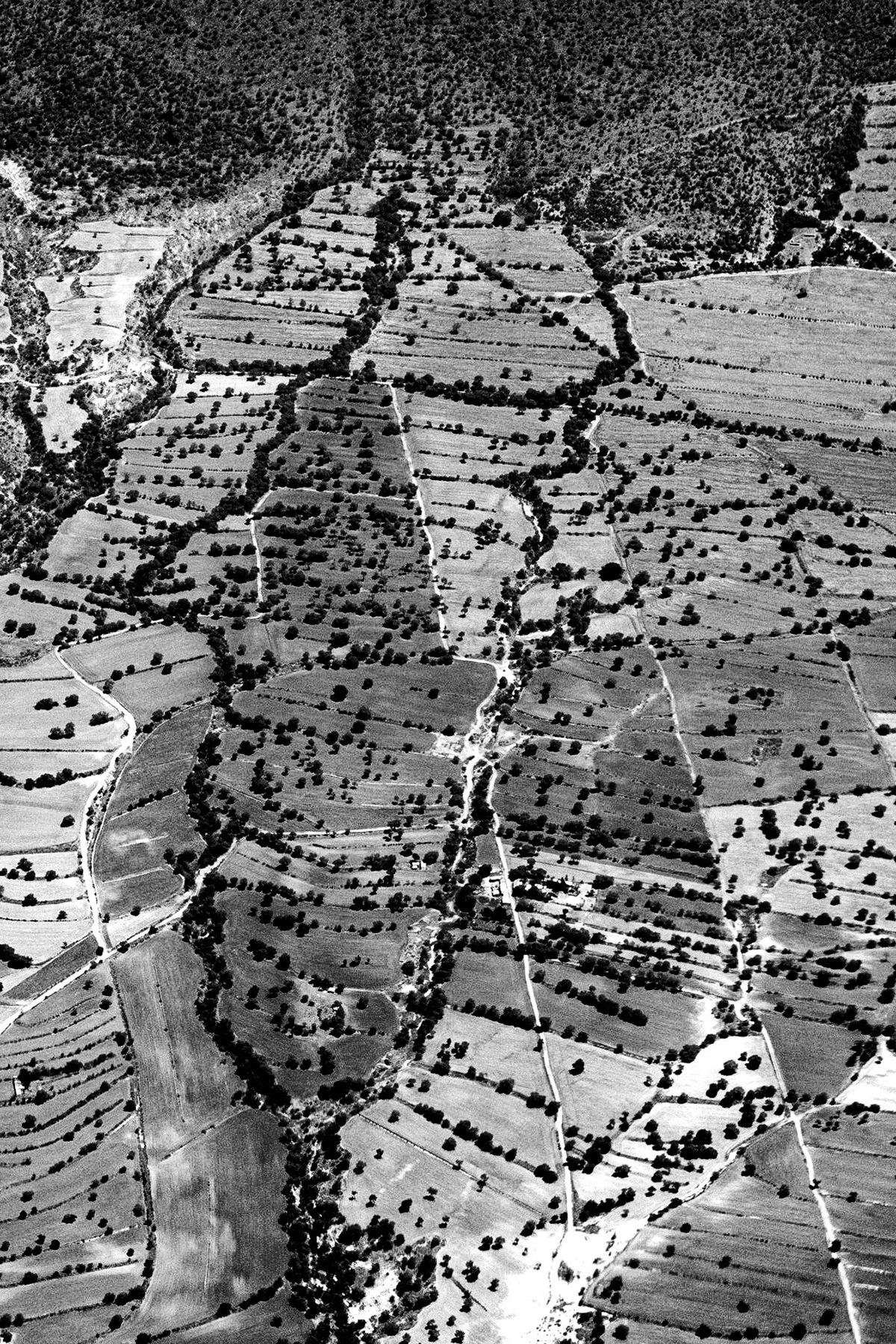 As the plane started approaching and descending towards the Mexico City airport I noticed the land below with its patterns of roads and vegetation in what seemed like a mostly dry landscape. I loved the graphics and envisioned from the start that these images might work well as contrasty black & white abstracts. Before the introduction of the Dehaze-slider into Lightroom these images might not have been possible.